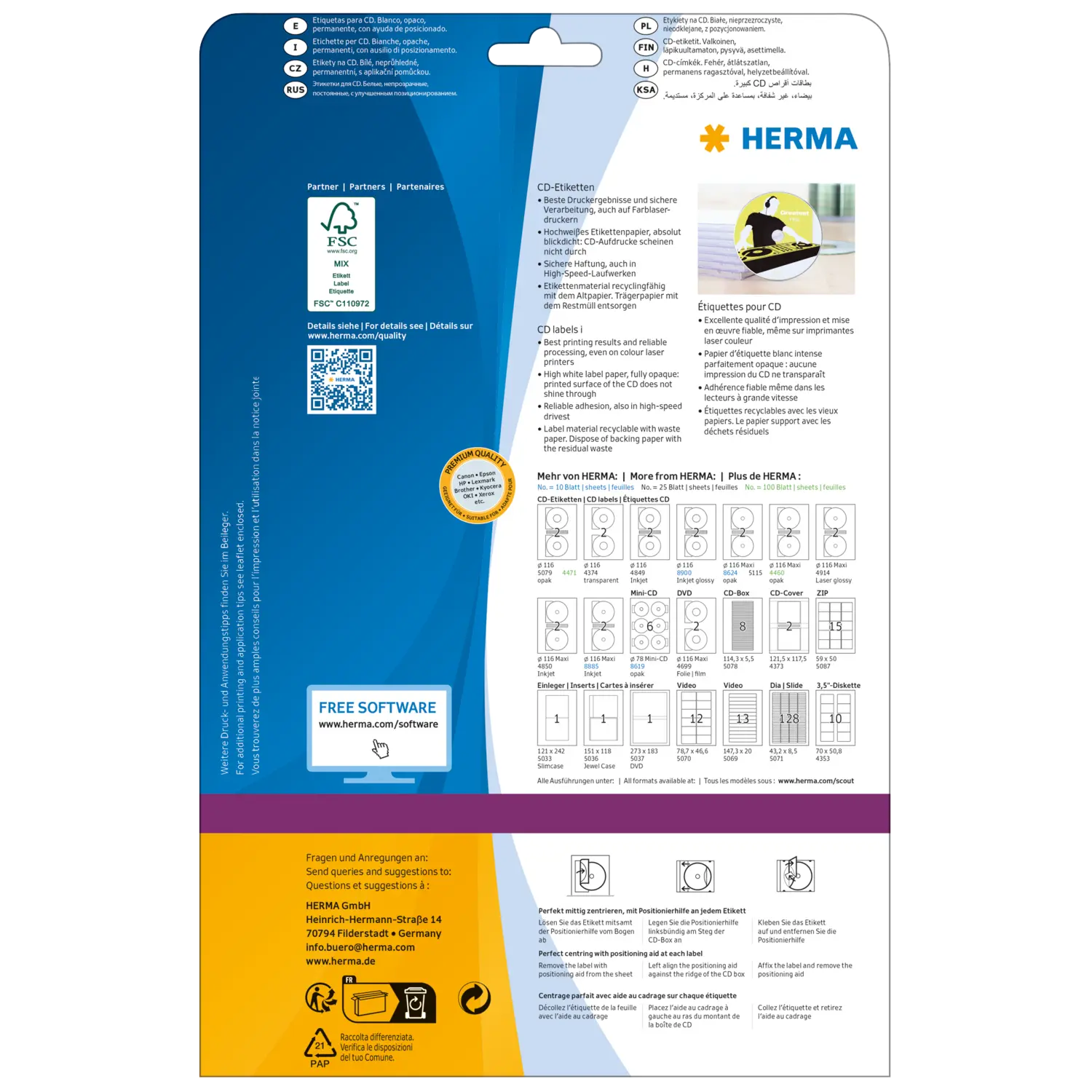 CD-etiketter A4, Ø 116 mm, vit papper matt ogenomskinlig 50 st.