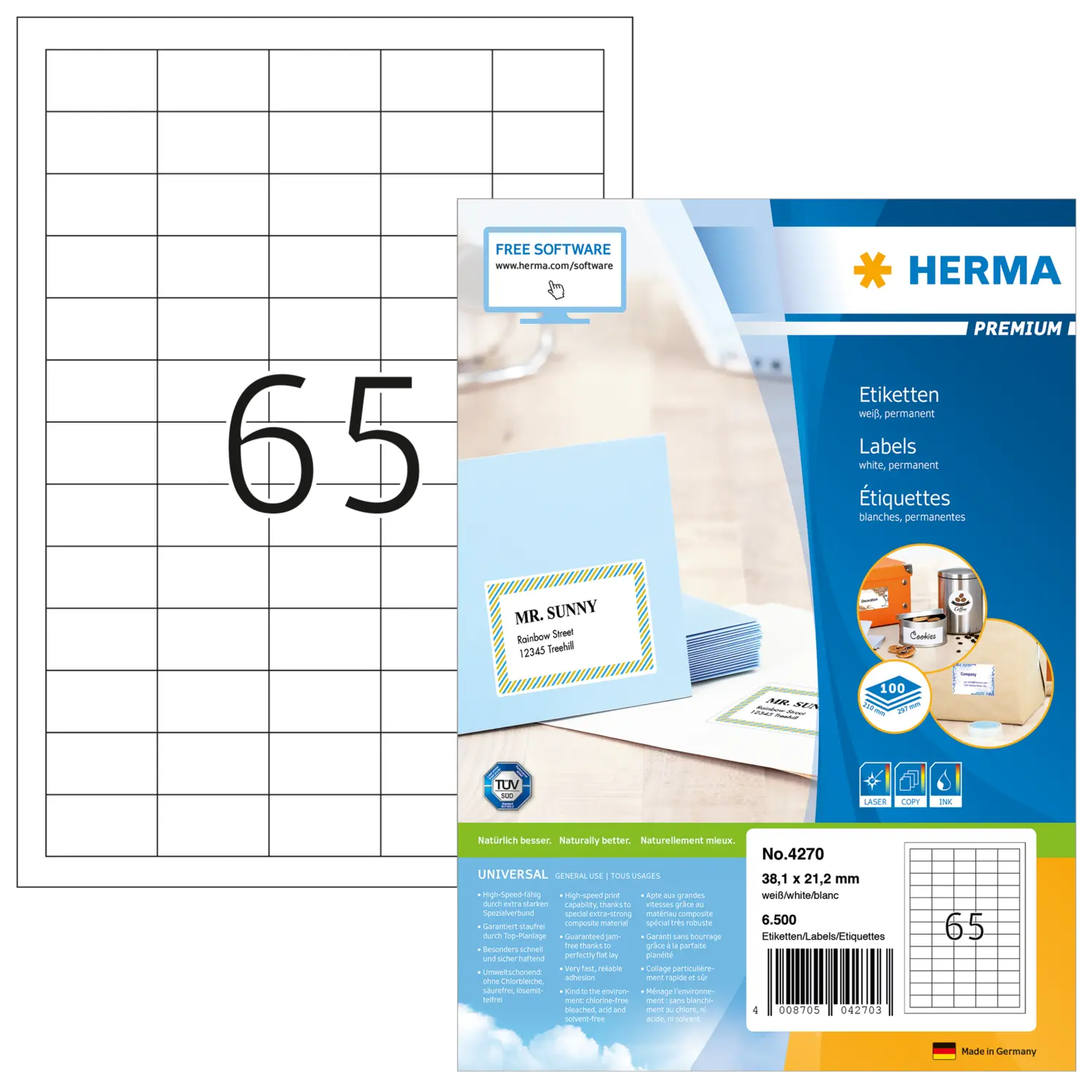 PREMIUM-etiketter A4, 38,1 x 21,2 mm, vita, permanent vidhäftande