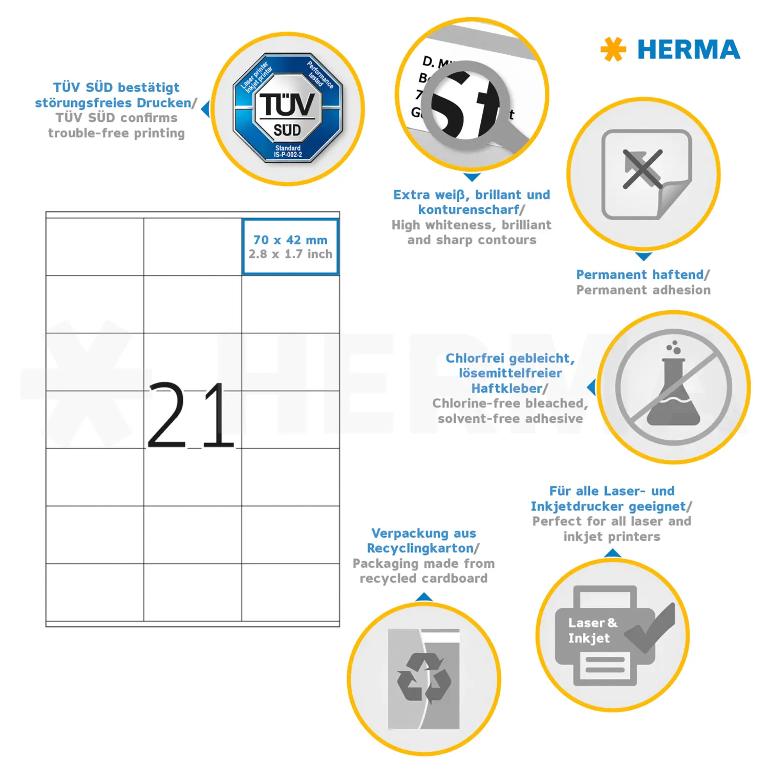 PREMIUM-etiketter A4, 70 x 42 mm, vita, permanent vidhäftande