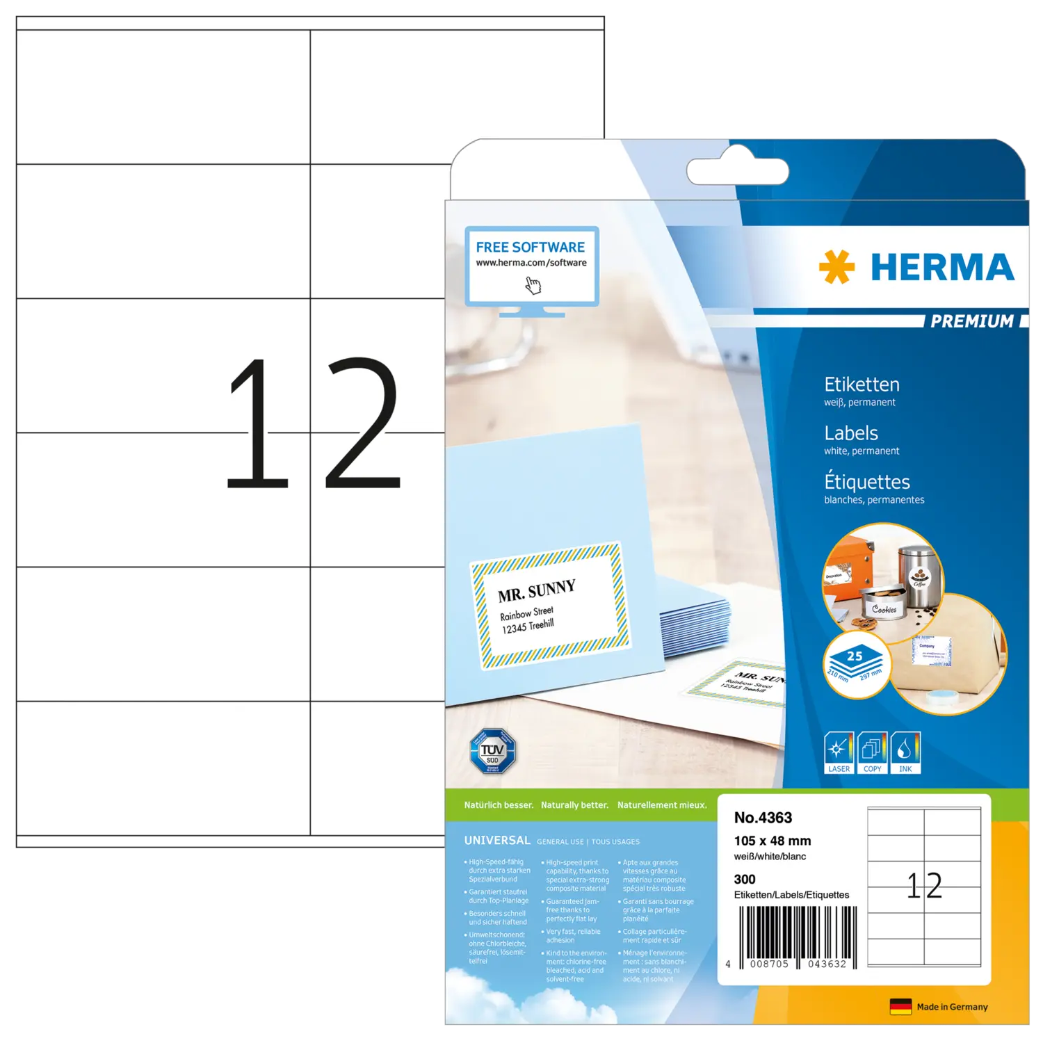 Innehåll: 300 etiketter / 25 ark