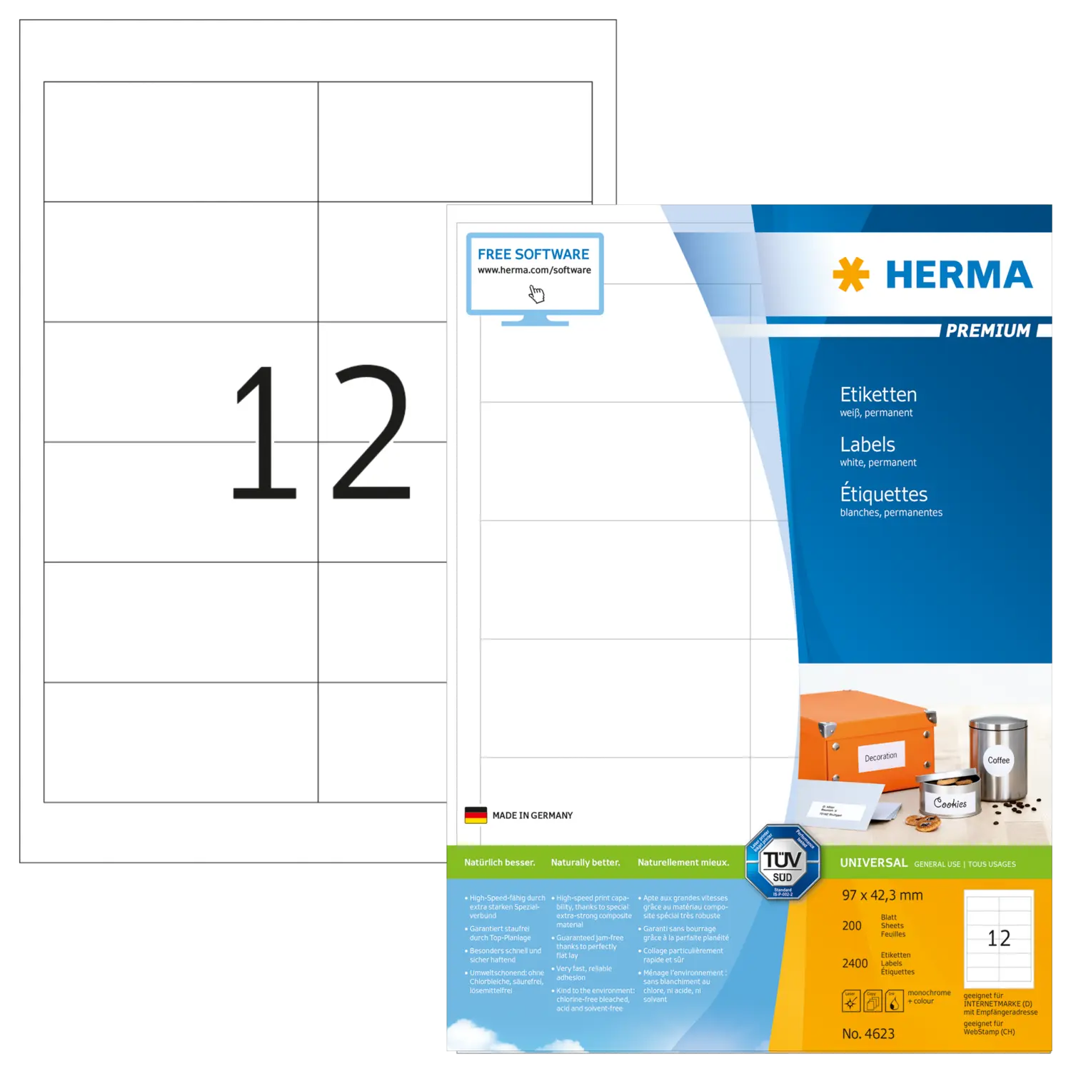 PREMIUM-etiketter A4, 97 x 42,3 mm, vita, permanent vidhäftande