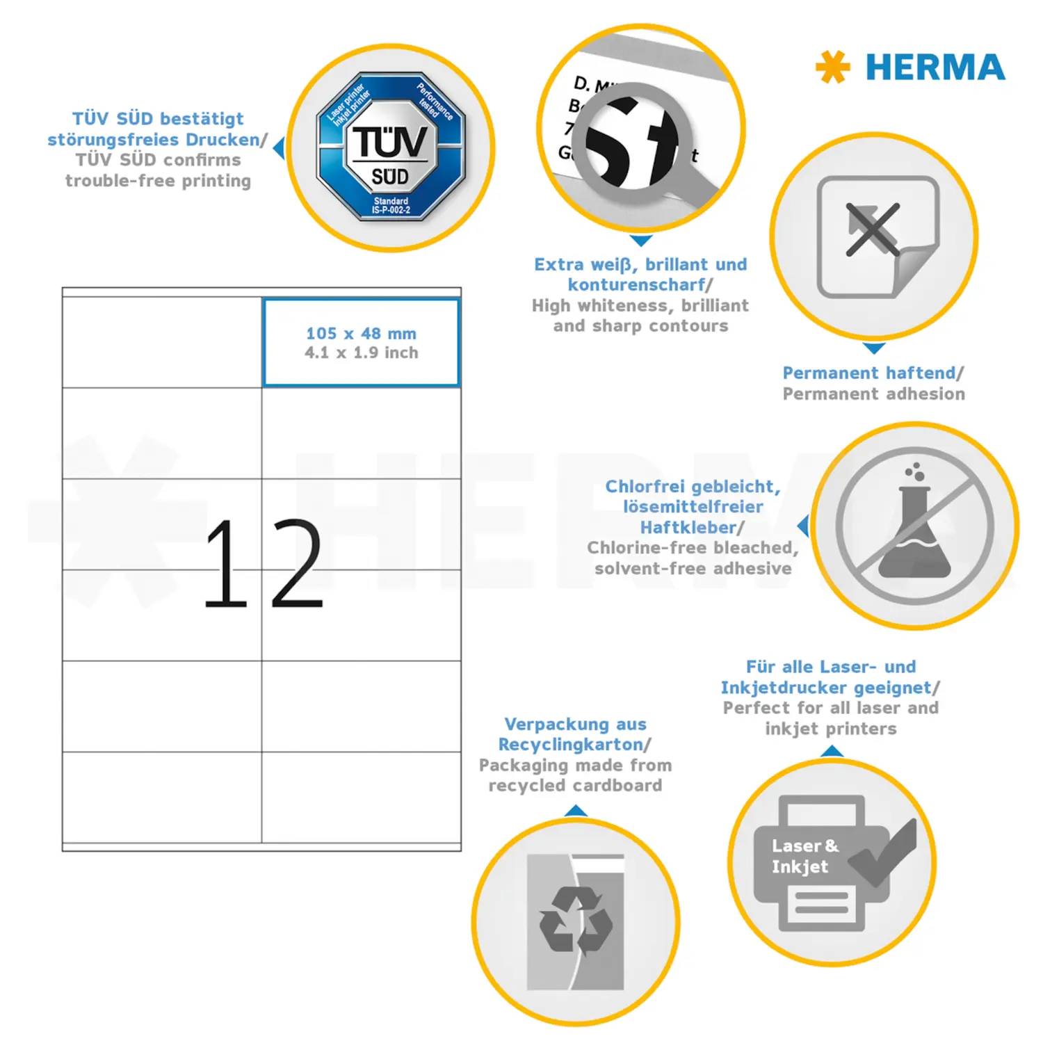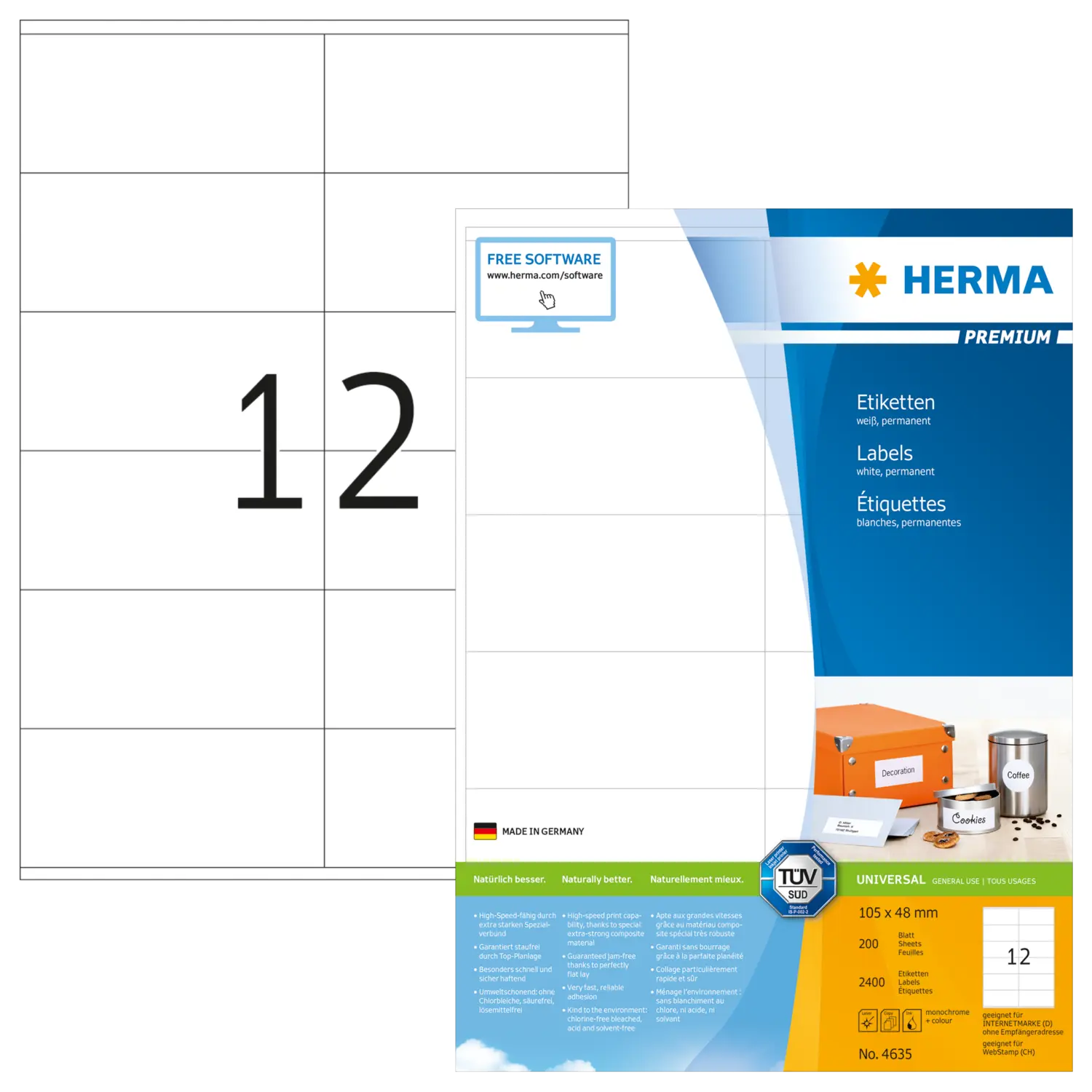 PREMIUM-etiketter A4, 105 x 48 mm, vita, permanent vidhäftande