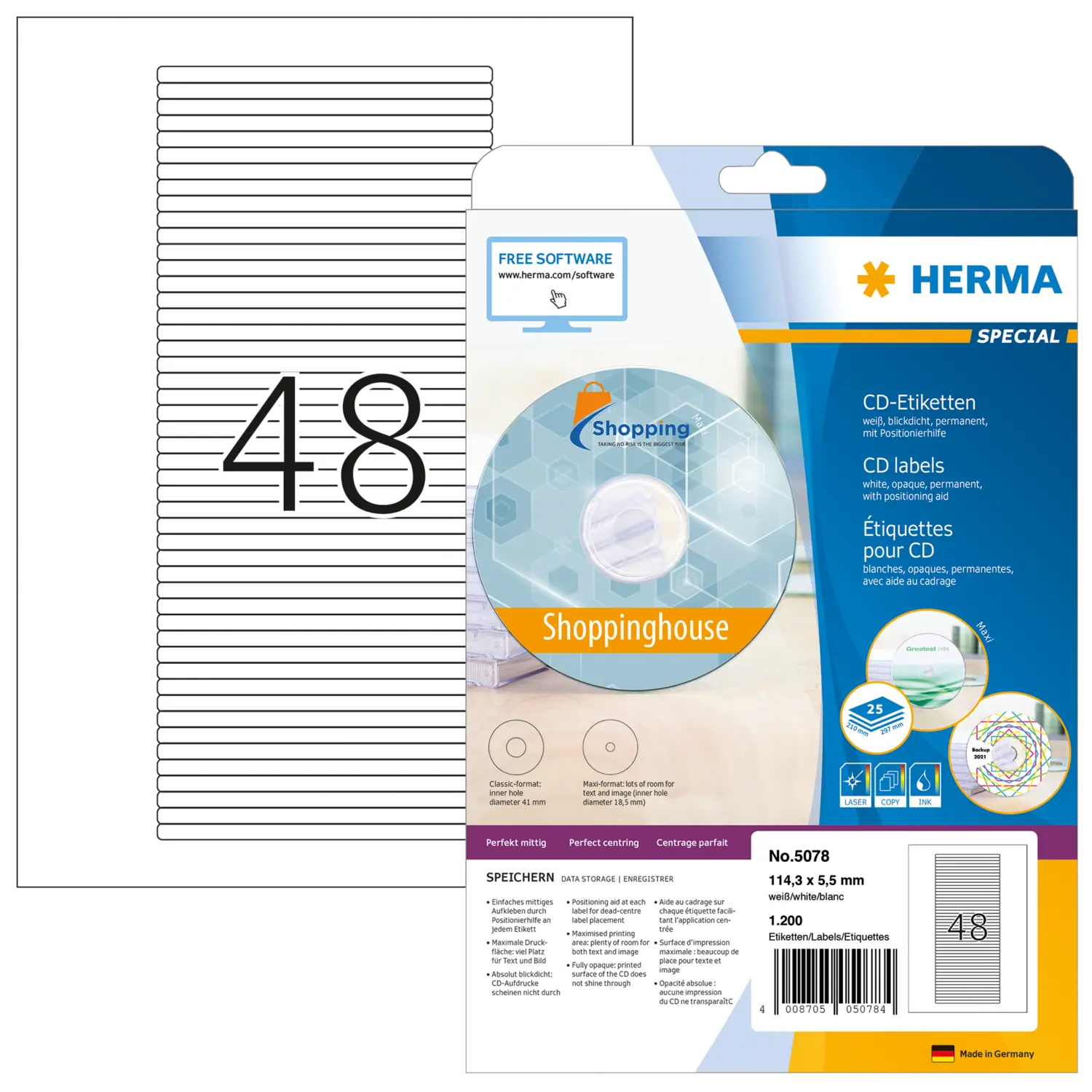 Etiketter för CD-bo x A4, 114,3 x 5,5 mm, vit papper matt 1200 st.