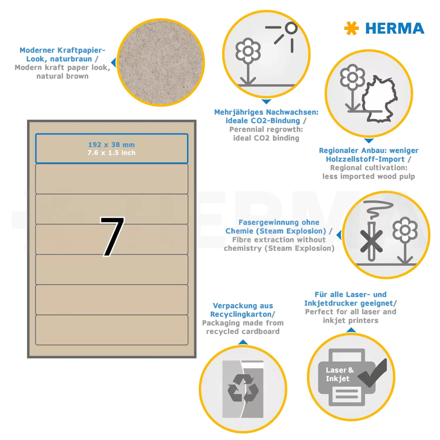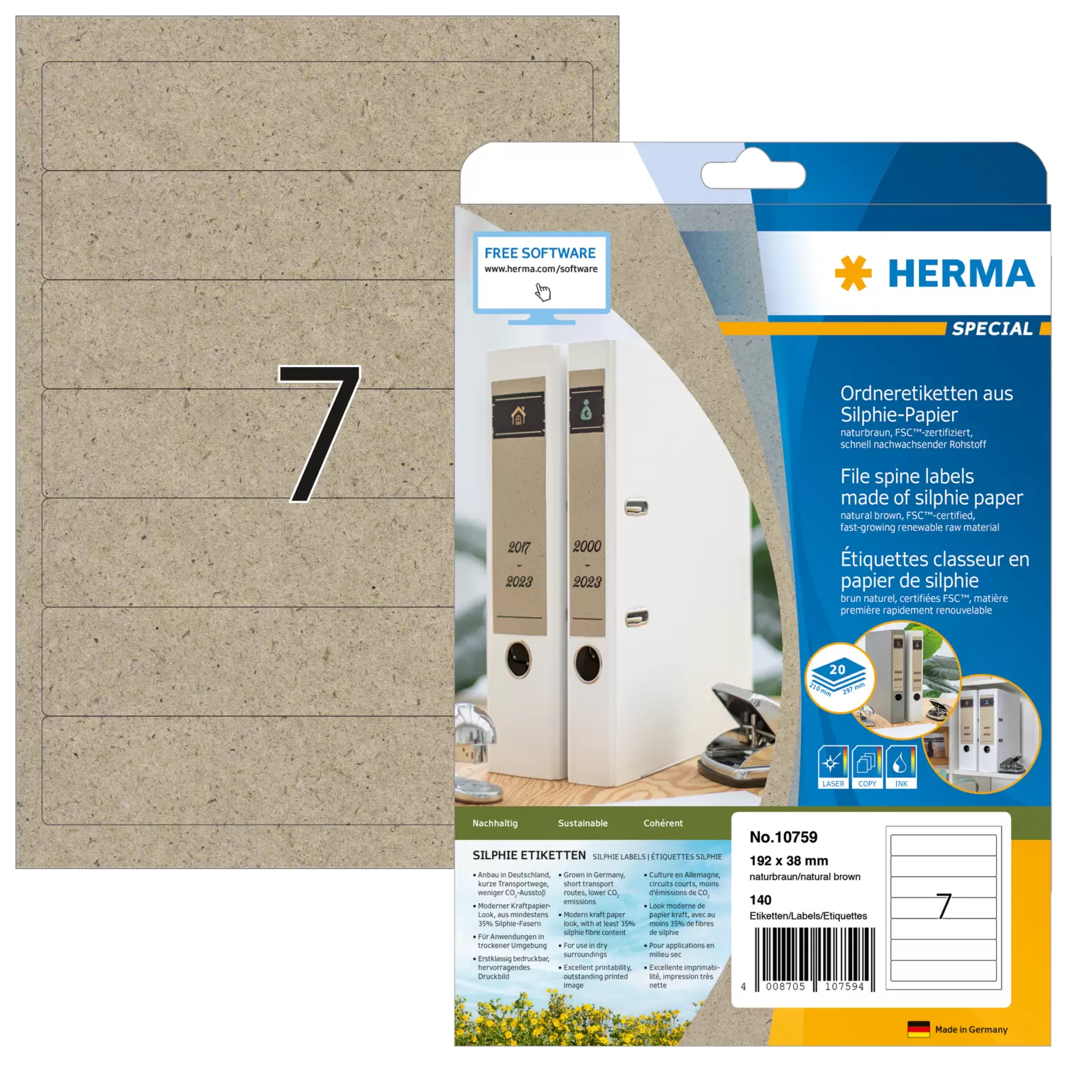 Pärmetiketter av silphium-papper A4, 192 x 38 mm, naturbruna