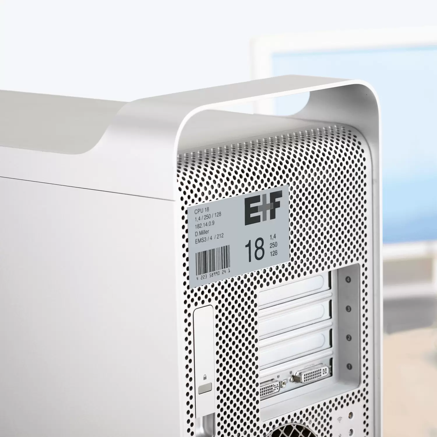 - För permanent märkning av inventarier, egendom och komponenter, ytterst slitstarka, åldrings-/temperatur-/UV-beständiga