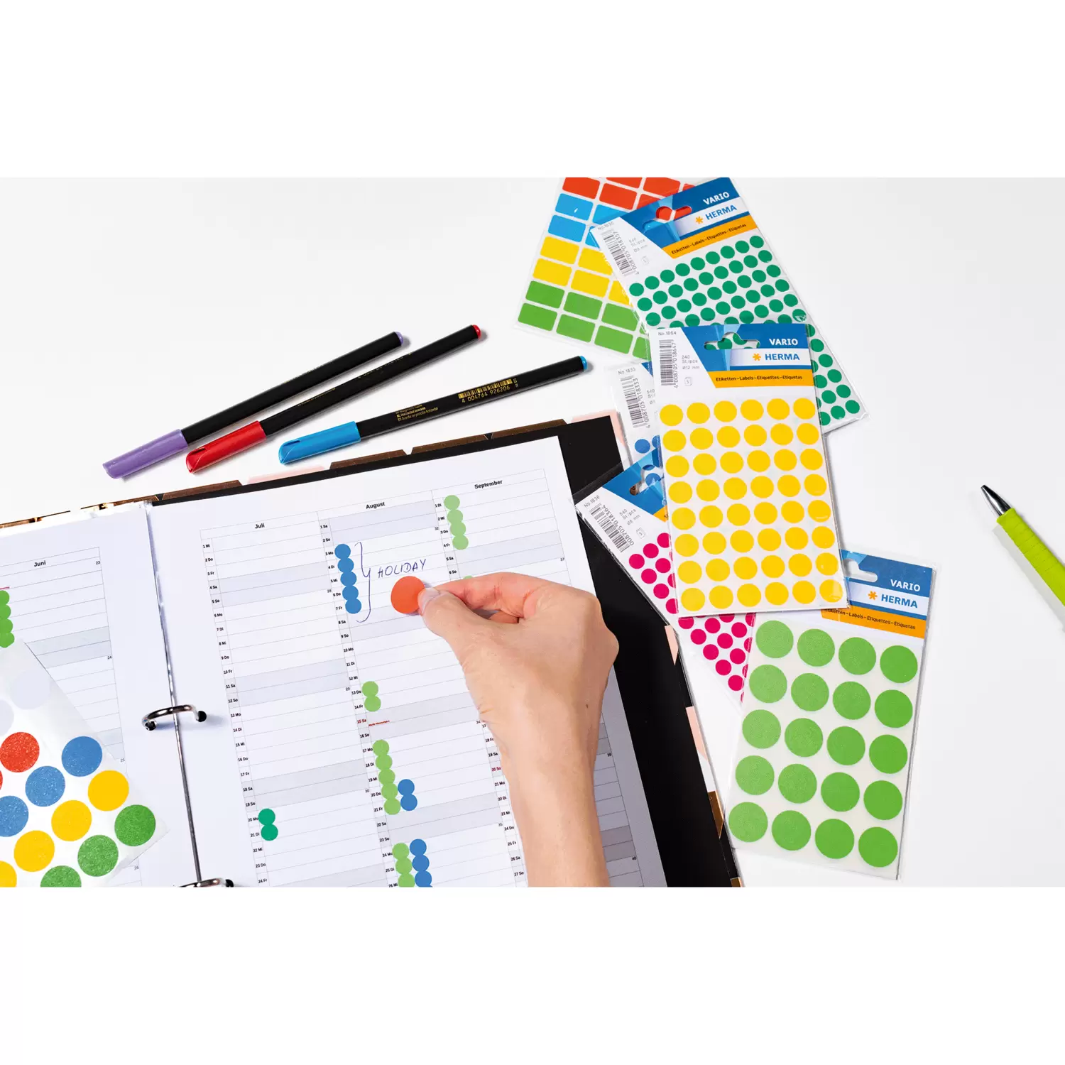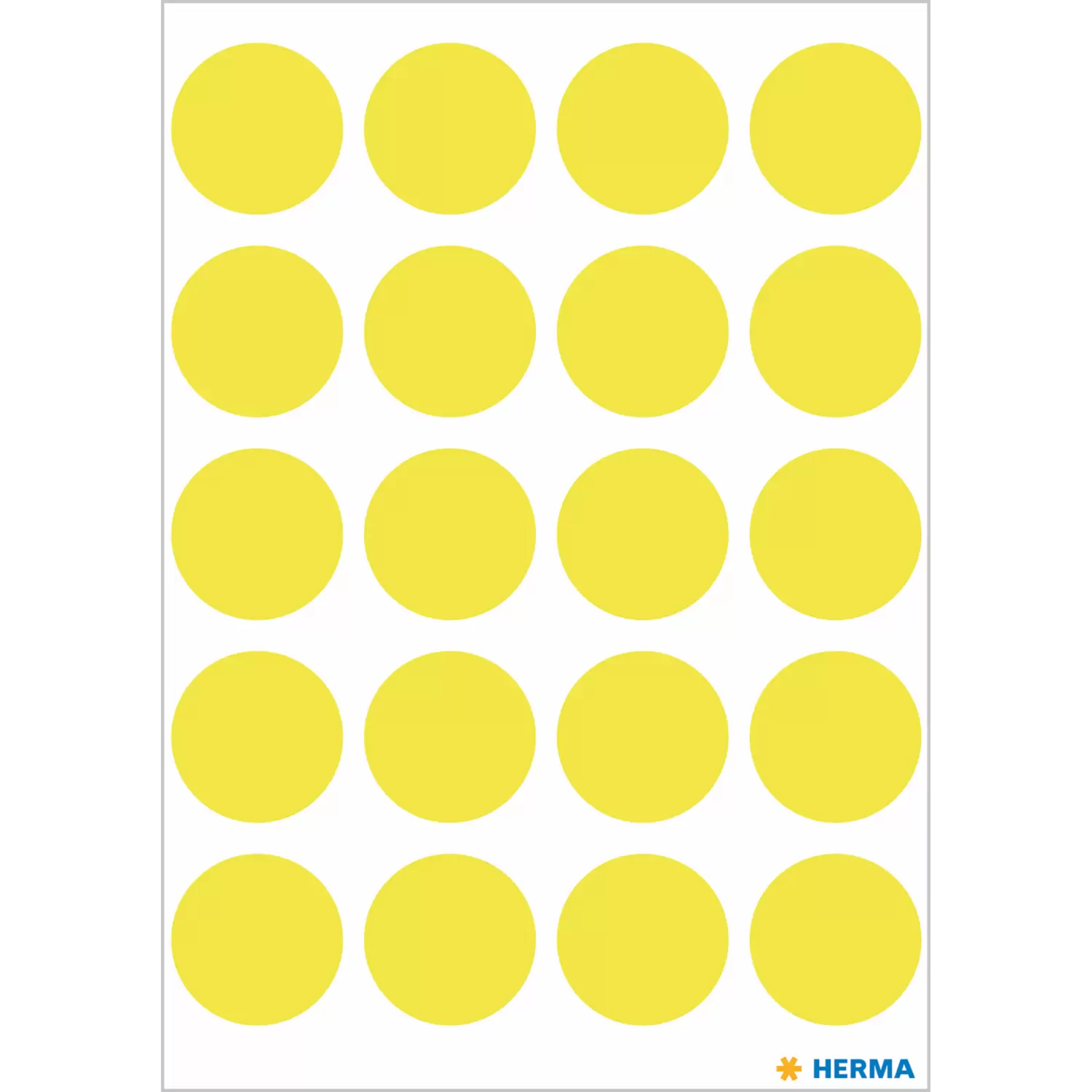 Universaletiketter, Ø 19 mm, runda, lysande gul, permanent vidhäftande, för handskriven märkning